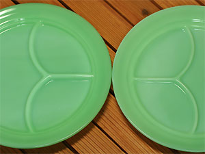刻印はFire-King OVEN GLASS 写真2枚目の左側が本品で仕切り線が太いタイプになります。仕切りの部分に光にかざすとわかる程度の小キズがありますが、ほとんど目立たないかと思います。