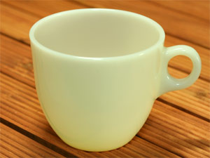 ほとんどホワイトと言ってもいいぐらいの微妙なカラーです。カップの底に製造時にできたヘアラインがありますが、あまり目立たない部分なので問題はないかと思います(写真3枚目丸印)