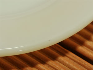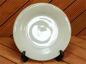 【未使用品】清楚なホワイトカラー。人気のサラダプレートです。リムの所々にに黒い点があります。3枚目の写真をご参考にしてください。