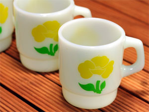 再入荷しました。黄色のポピーがかわいい人気のマグカップです。同じ絵柄が両面にプリントされています。