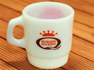 バーガークイーンのモーニングマグ。ファーストフードのマグカップは日本だけでなくアメリカでも大人気。シンプルで完成度の高いデザインは時代に関係なくいいものですね。