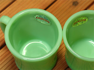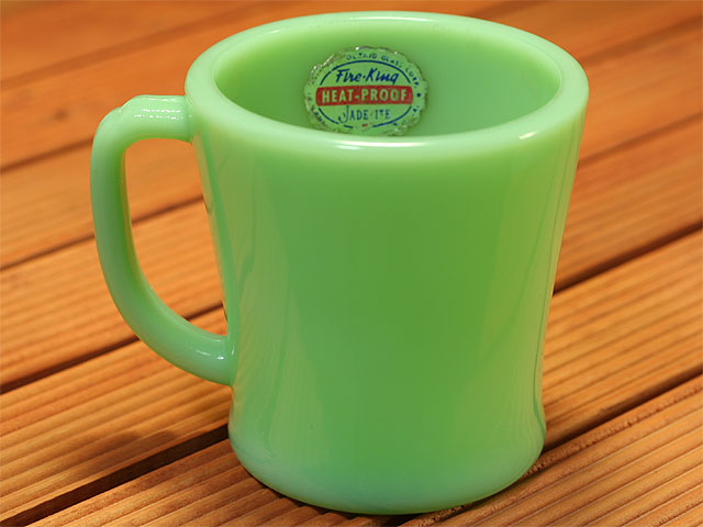 再入荷しました。同じ刻印 OVEN Fire-King WARE の中でも比較的初期のものと考えられ、やや重いマグです。60年代のマグカップ(写真2枚目右側)と比べて、やや分厚くなっているのがわかりますでしょうか。意外とコンディションの良いものは少なくラベルつきともなれば、さらに希少。なかなか巡り合えないものです。コレクターならぜひ欲しいアイテムではないでしょうか。